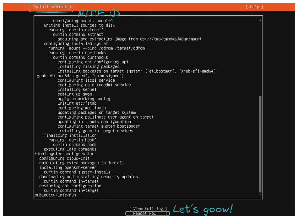 Featured Server Snaps, do not select anything and selectDone; it will start installing packages, be patient, and then just clickReboot Now.