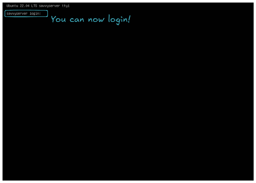 Final thing, let's check if we can connect to the server from another machine via SSH. First, find the server's IP by logging in and running the following command on the server: