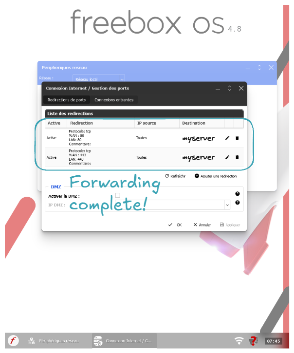 Let's start by forwarding ports 80 and 443 requests from our ISP router to our server's ports 80 and 443: