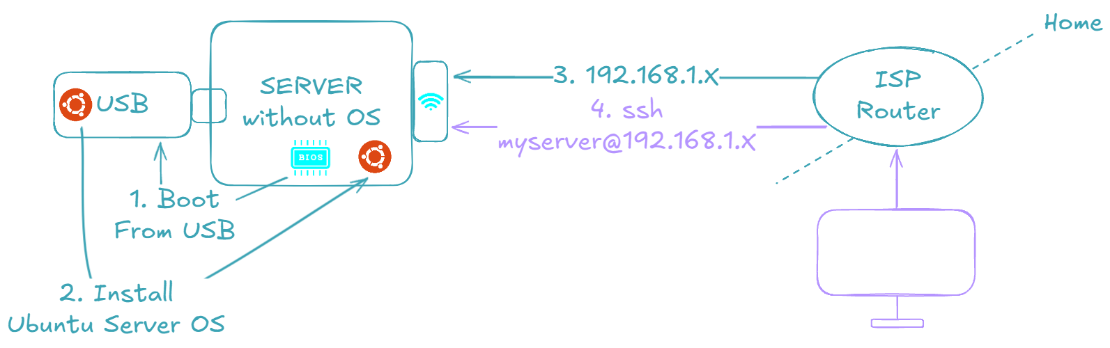 Then, congratulations! You've successfully set up a server similar to the ones you can rent from AWS or any other cloud provider ๐คฉ. All the following commands will be executed from the work machine on behalf of the server via SSH from now on!